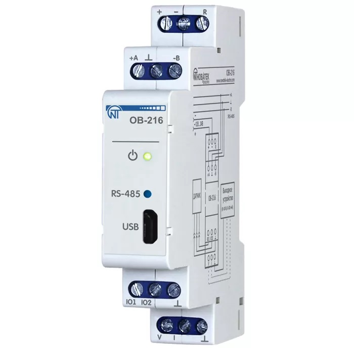 Интерфейсы RS-485 либо USB обеспечивают управление подсоединенными приборами и считывание показаний датчиков по протоколу ModBus.