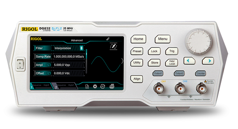 Универсальный генератор сигналов DG831 обладает низким уровнем собственных шумов и высокой функциональностью. Генератор сигналов DG831 предлагает инженерам большое количество форм сигналов, в том числе псевдослучайные последовательности, сигнал RS-232, программируемые последовательности, а также различные виды модуляции.