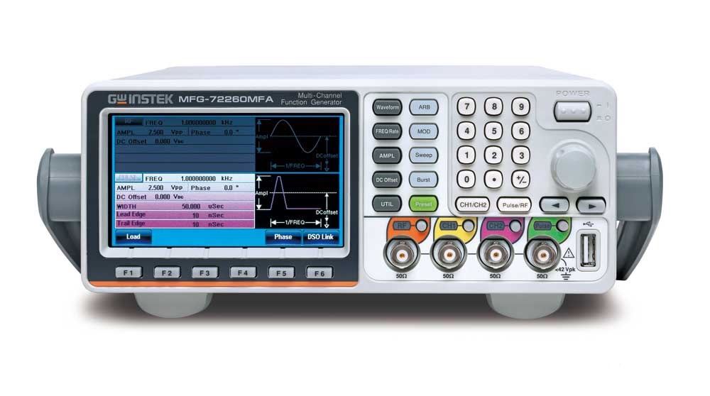Генератор сигналов специальной и произвольной формы MFG-72260MRA обладает независимыми выходами с полной гальванической развязкой + синхронизацией вход/выход ТТЛ, имеет вход внешней модуляции.
