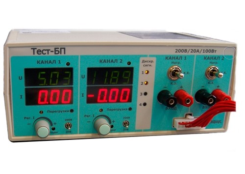 Блок электронных нагрузок Тест-БП создан для анализа параметров выходных напряжений и сигналов блоков питания. Для проверки диапазона рабочего напряжения и тока потребления по первичной цепи предполагается применение ЛИПС, Нептун, Уран, Ретом и других источников, оснащенных измерительными приборами и электронным миллисекундомером.
