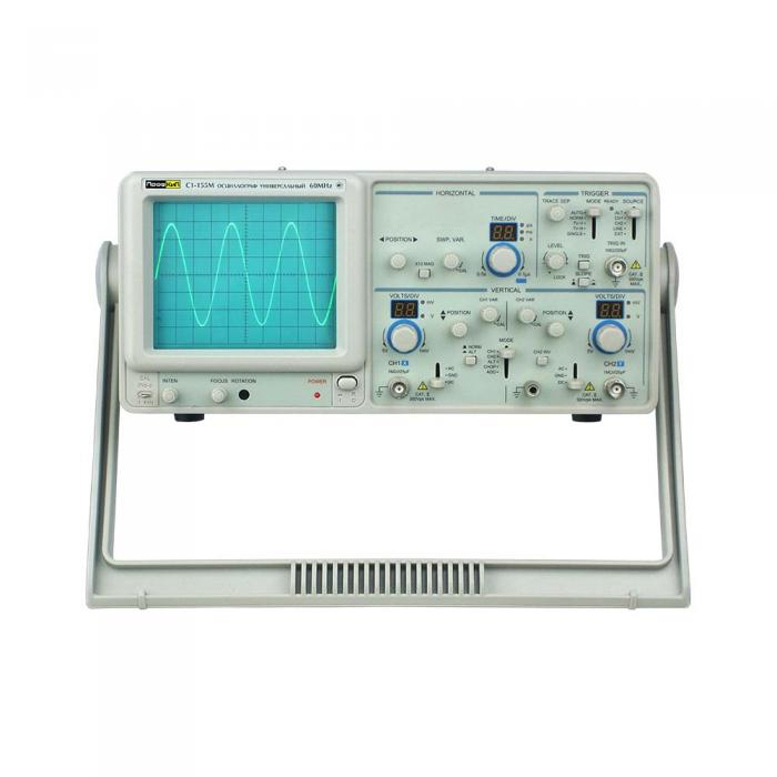 Осциллограф универсальный ПрофКиП С1-155М предназначен для исследования электрических сигналов путем визуального наблюдения их формы и измерения амплитудно-временных параметров сигнала по калиброванной шкале ЭЛТ. Осциллограф универсальный ПрофКиП С1-155М применяются при регулировке, ремонте и обслуживании РЭА в лабораторных, цеховых и полевых условиях эксплуатации. Может быть использован для контроля электрических параметров в промышленных и научных исследовательских лабораториях, ремонтных мастерских, учебных заведениях, в радиолюбительской практике. Осциллограф универсальный ПрофКиП С1-155М имеет встроенный частотомер, позволяющий измерять частоту входящих сигналов с регистрацией на шестизначном электронном табло.