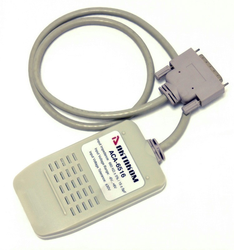Вставьте разъем кабеля логического пробника АСА-6516 во входной разъем на передней панели осциллографа и закрепите его двумя винтами. С другой стороны логического пробника подключается 16-ти канальный модуль с зажимами (пробниками). Подключите зажимы к источнику сигнала. Прибор готов к проведению измерений
