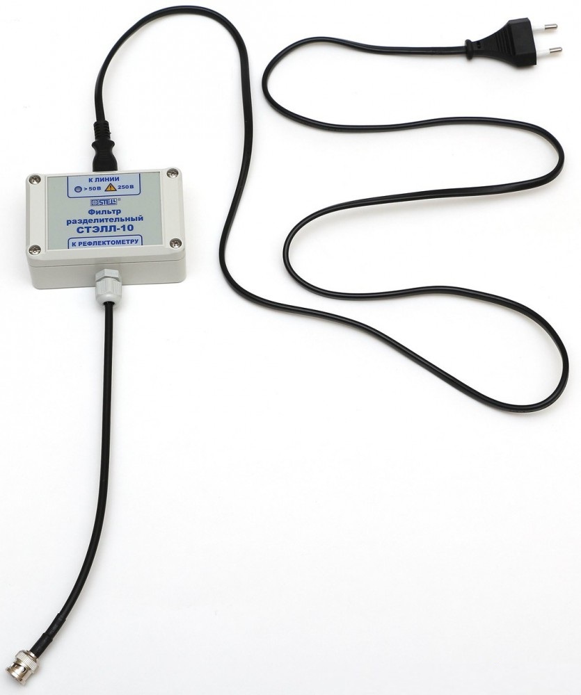 Фильтр разделительный СТЭЛЛ-10 это дополнительный прибор к импульсным рефлектометрам, позволяющий измерять кабельные сети под напряжением до 250В. СТЭЛЛ-10 был разработан для использования с рефлектометрами фирмы СТЭЛЛ: РЕЙС-45, РЕЙС-50, РЕЙС-100, РЕЙС-105, РЕЙС-205, РЕЙС-305, РЕЙС-405 и СТЭЛЛ-4500. Может использоваться с другими рефлектометрами. Обычно все измерения рефлектометрами проводятся на обесточенных кабелях. Однако на практике иногда возникает необходимость провести измерения в работающих кабельных сетях, без разъединения абонентов друг от друга. Для решения этой задачи служит «Фильтр разделительный СТЭЛЛ-10».