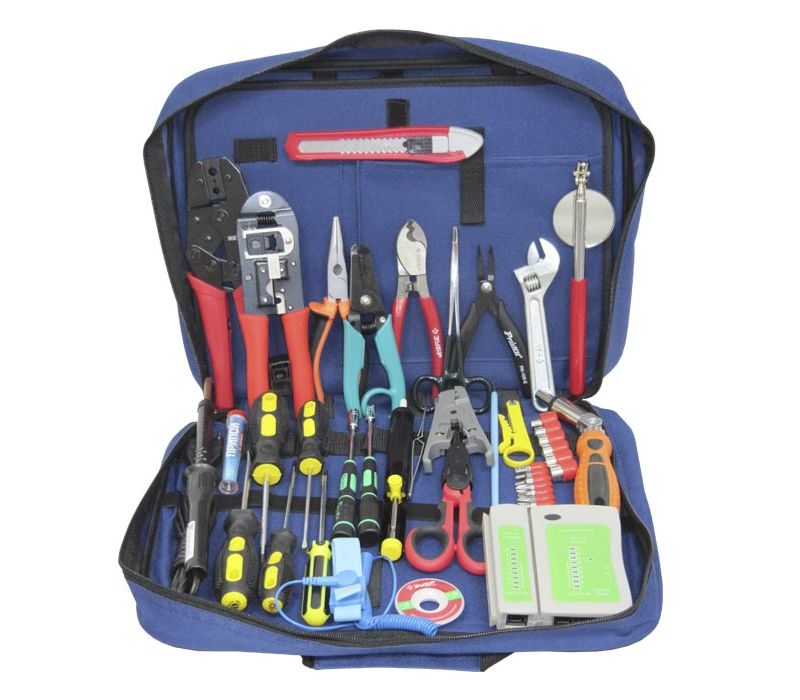 Набор для монтажа телекоммуникационных сетей (аналог Proskit 1PK-19382B), с помощью которого специалисты производят монтаж и обслуживание кабелей связи, мониторинг и диагностику систем, устранение последствий дефектов оборудования, определяются способы восстановления сетей.