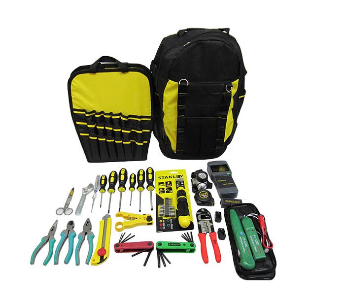 Набор инструментов для работы с витой парой в рюкзаке НИРВП-2 (аналог SK –LAN-2) создан для системных администраторов или монтажников, часто выезжающих на объекты для решения локальных проблем. В набор включено все необходимое для тестирования локальных и телефонных сетей, локализации проблем и их устранения.