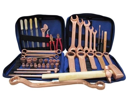 Универсальный набор оператора добычи нефти и газа для обслуживания нефтепромыслового и газодобывающего оборудования. Данный набор искробезопасного инструмента разработан в сотрудничестве с операторами ДНГ. Как показывает практика данный набор прекрасно перекрывает все потребности операторов, а так же подходит для обслуживания в других средах, где требуется использования искробезопасного инструмента. Весь инструмент произведен в России, что позволяет внедрять его на предприятиях нефти и газодобычи с учетом импортозамещения. Набор искробезопасного инструмента для проведения слесарно-монтажных работ, который не дает искры при ударах, трениях, падении, срывах и т.д. Инструмент покрыт медью толщиной 30мкм.