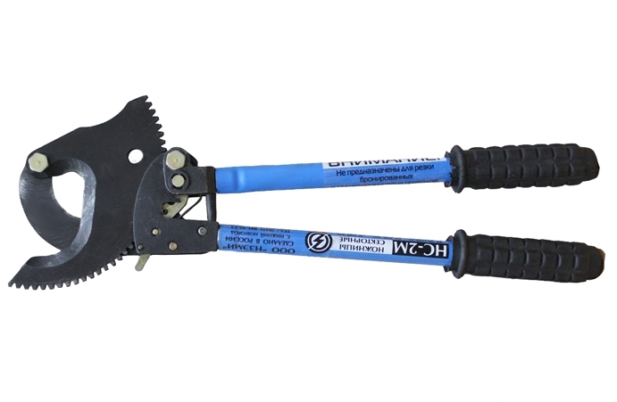 Ножницы секторные НС-1, НС-2М предназначены для резки проводов и кабелей с медными и алюминиевыми жилами без стального сердечника. Ножницы секторные НС-3М предназначены для резки проводов и кабелей с медными и алюминиевыми жилами диаметром до 70 мм, в том числе бронированных ленточной стальной броней. Резка кабеля с проволочной стальной броней и резка сталеалюминиевых проводов не предусмотрена условиями эксплуатации изделия. Современные технологии обработки высококачественной стали, применяемые в производстве режущих частей ножниц, позволяют осуществлять резку кабеля без замятий. Усилие передается через механизм зубчатой передачи.