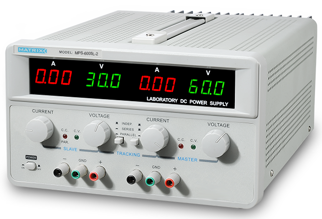 - Индикация Matrix MPS-6005L-2: 3-разрядные LED-дисплеи на ток и напряжение