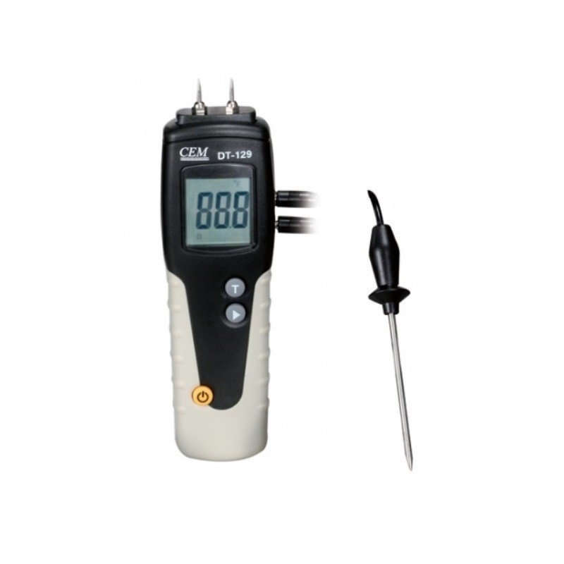 Прибор DT-129 предназначен для измерения уровня влажности в пиломатериалах (также картон, бумага) и твердых материалов (пластик, раствор бетона).